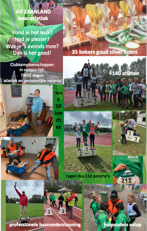 De oktober nieuwsbrief is uit met daarin: Agenda, Terugblik op geslaagde Club kampioenschappen, (Geen) Trainingen tijdens de herfstvakantie, Nieuwe indeling per 1 november, Onze jeugdtrainers vragen dringend om assistentie (assistent-baanatletiektrainer-2 opleiding), Juryopleiding, Even voorstellen, Grote Clubactie, Coronamaatregelen en Column.
