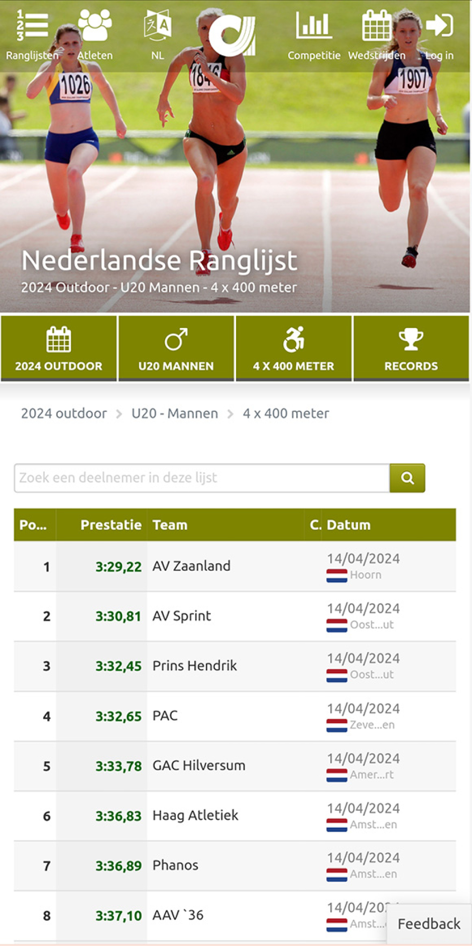 Winnende team 4 x 400